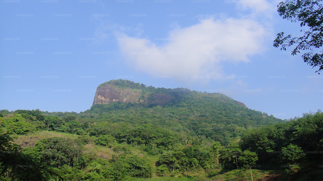 We were traveling along the scenic Hathgampola Road after turning off from Mawanella. At first, we were not sure what this rock was, that kept looming from time to time, dominating the surrounding planes, for we were quite foreign to the area and were in pursuit of, all together, another attraction.