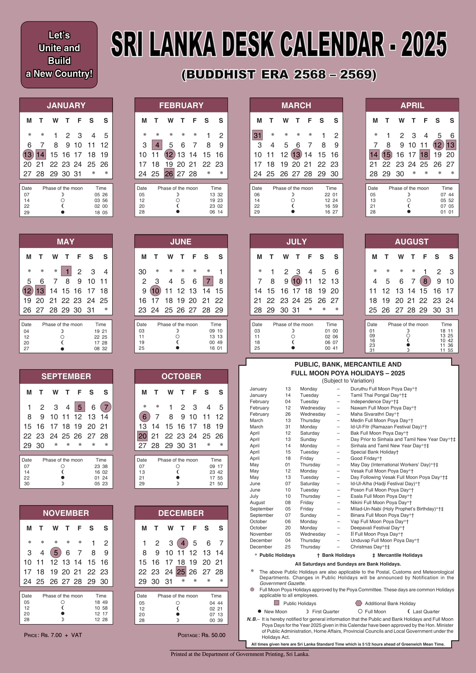 | 2025-Jun-10 (Tuesday) | June | Poson Full Moon Poya Day |