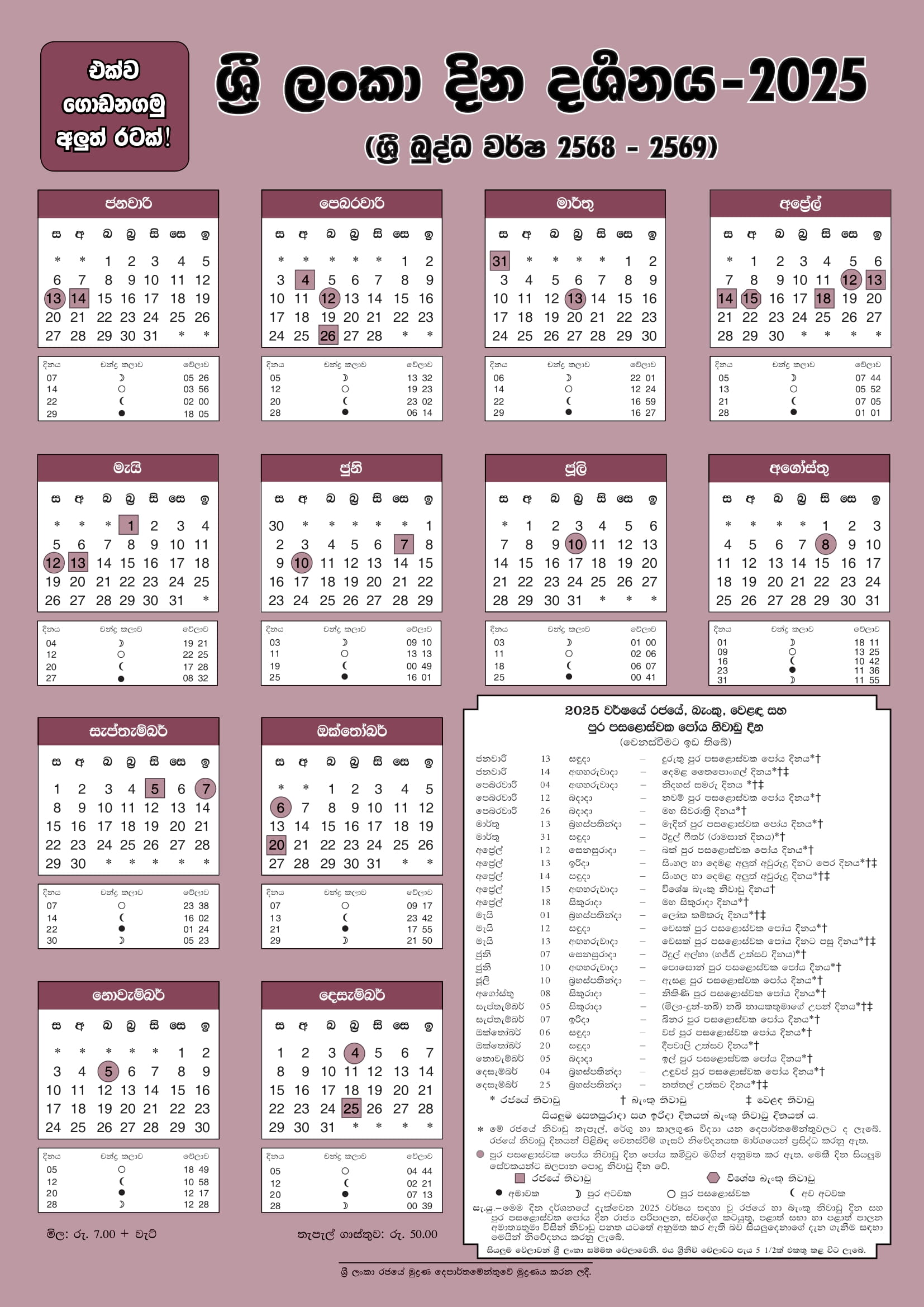 | 2025-Mar-13 (Thursday) | March | Medin Full Moon Poya Day |