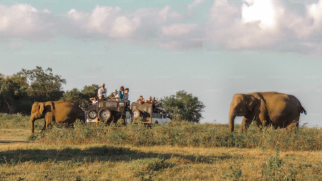 This safari takes you on a ride through the Minneriya National Park. Enjoy the sight of over 150 elephants congregating in one place during the famous Great Elephant Gathering, which happens in the dry season between May to October. In addition to elephants, get a chance to also see many mammals, birds, reptiles and amphibians in the scrublands, forests and other areas.