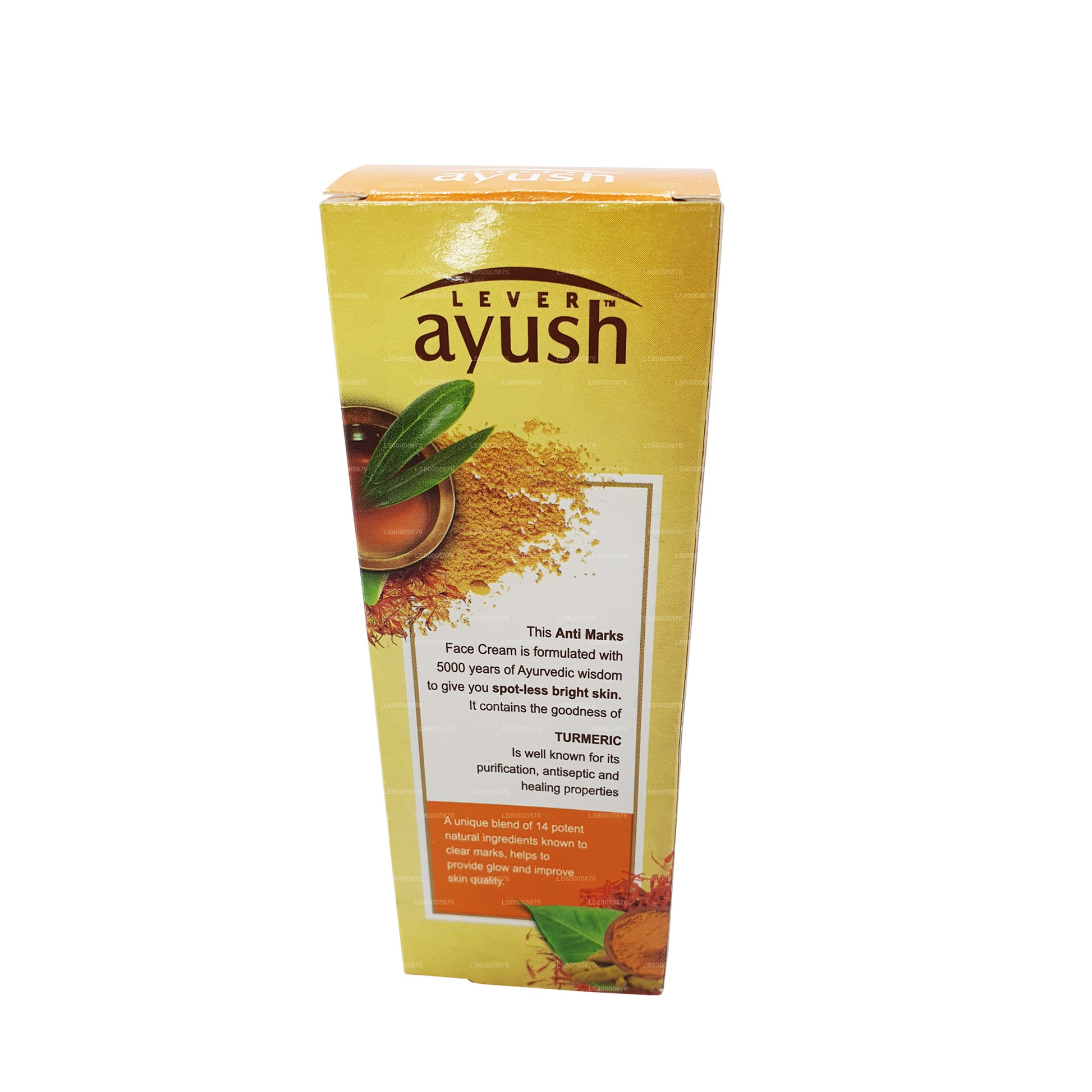 (SKU: LS80005876) Krem do twarzy Ayush Anti Marks zawiera dobroć kurkumy (Haldi) znanej ze swoich właściwości oczyszczających i antyseptycznych oraz Kumkumadi Tailam, który leczy ślady, rozjaśnia kolor skóry i poprawia jakość skóry dla jasnej skóry bez plam.