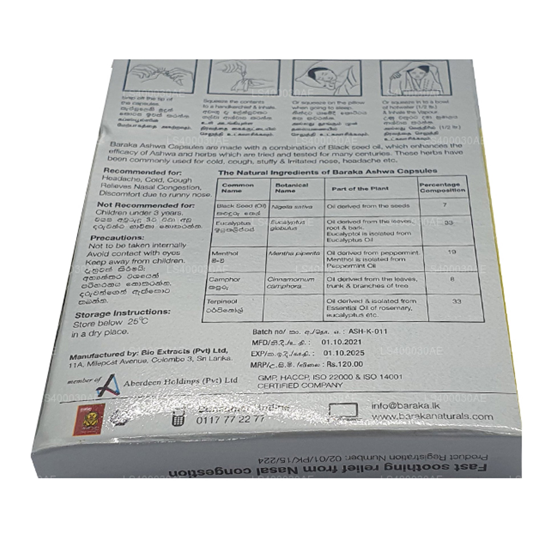 Składniki: olej z nasion czarnego, eukaliptus, mentol, kamfora, terpineol
