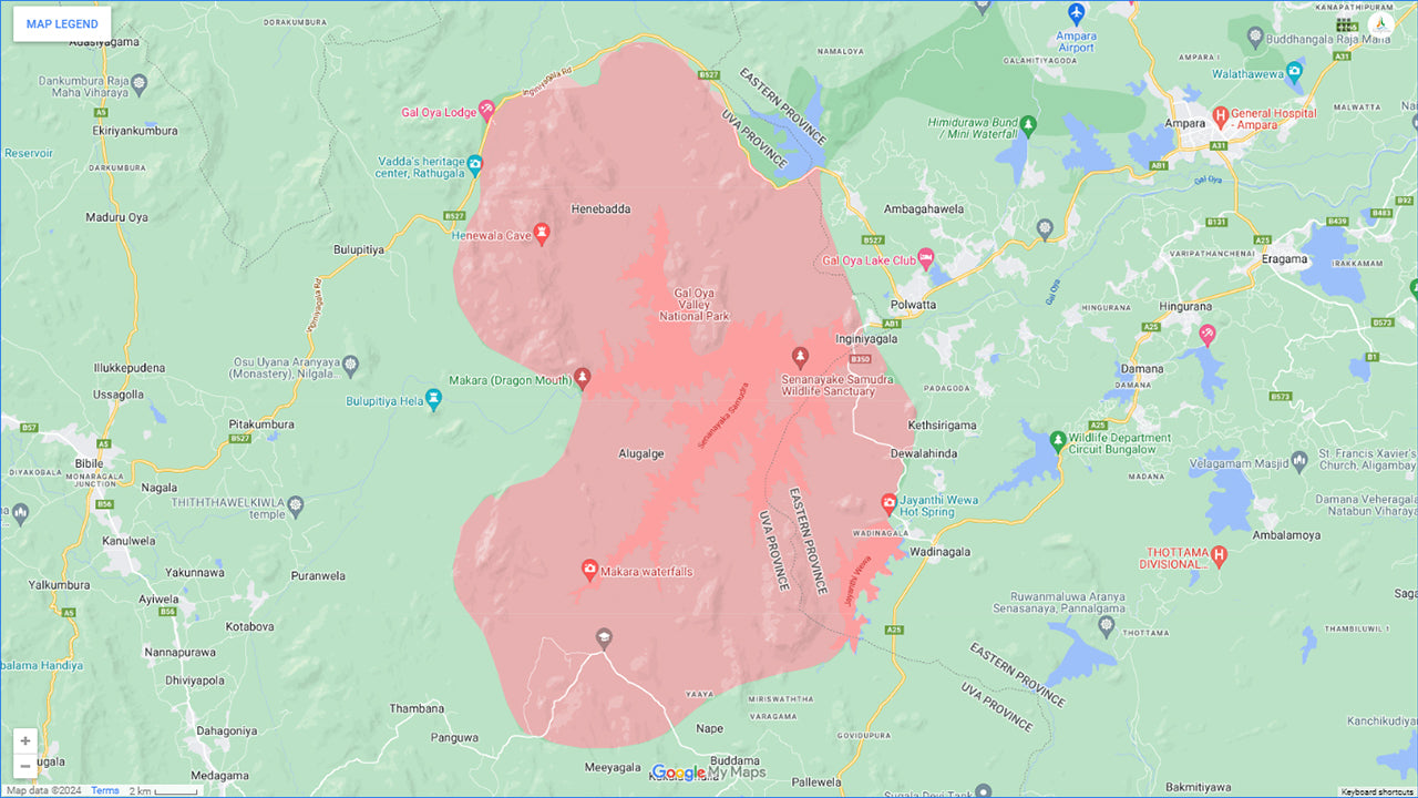 Transfer between Colombo Airport (CMB) and Gal Oya Lodge, Ampara