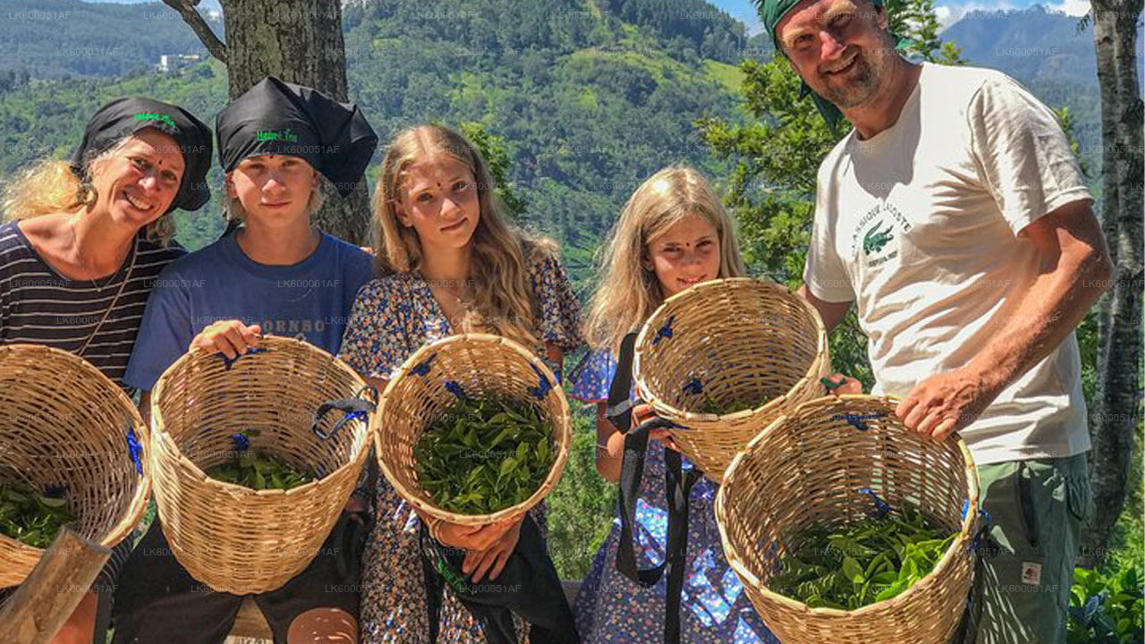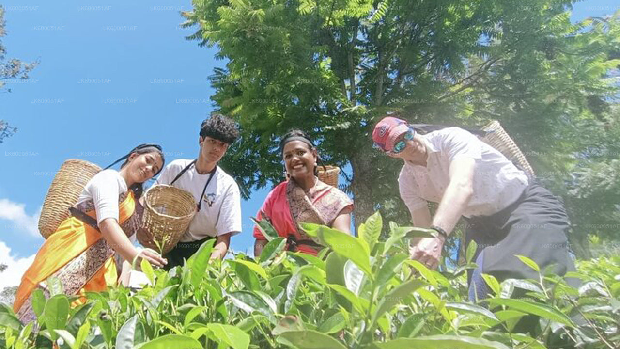 The tour starts with a peaceful walk through lush green tea fields, where you'll meet experienced tea pluckers and observe their traditional techniques. You'll also have the opportunity to try tea picking yourself, using a basket and a small mottu, as well as dress in the customary wraparound saree or sarong if you'd like to fully immerse yourself in the experience.
