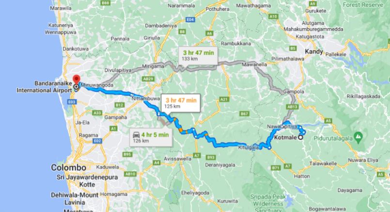 - Pick up from Kothmale and drop-off at ANY address within the city limits of Colombo Airport (CMB).