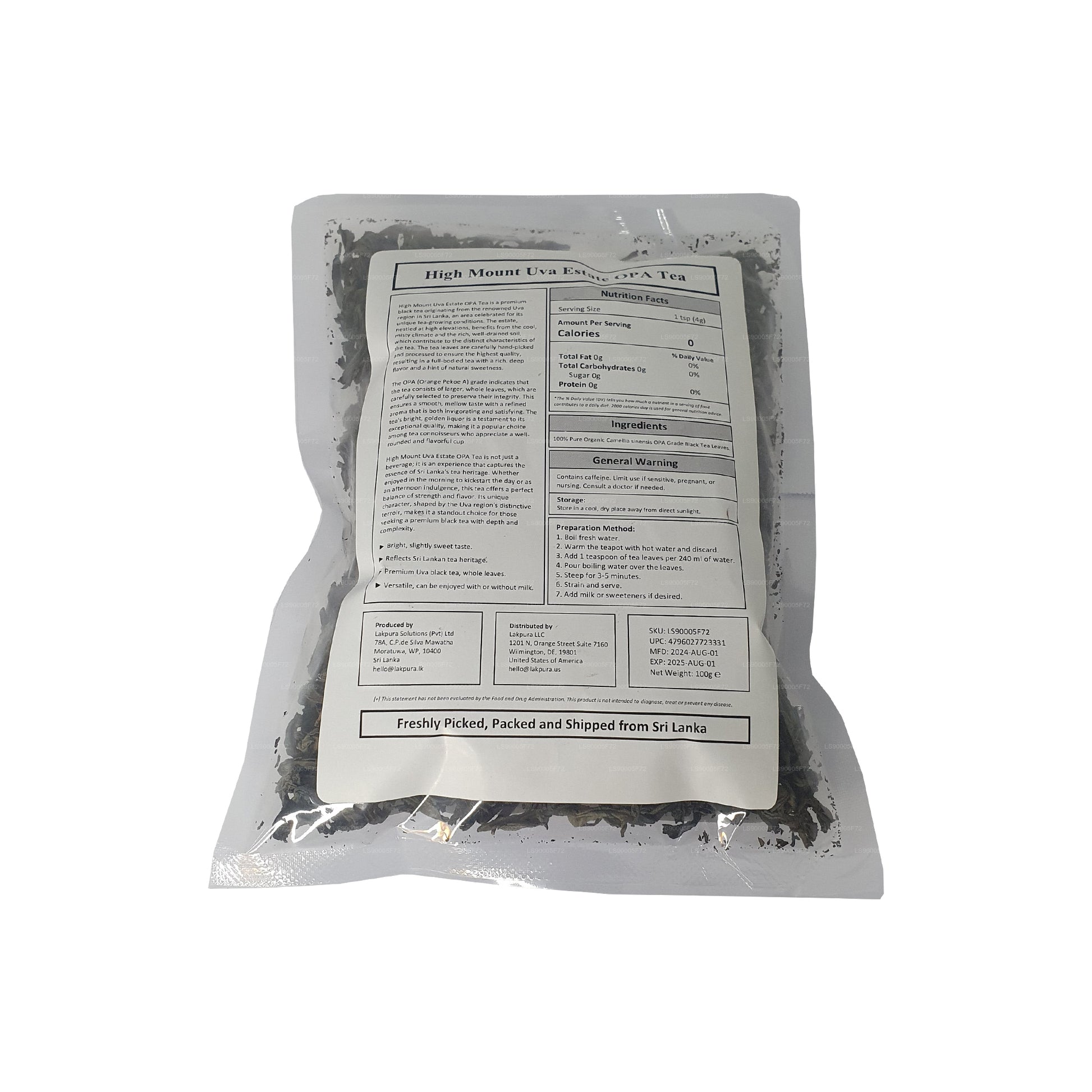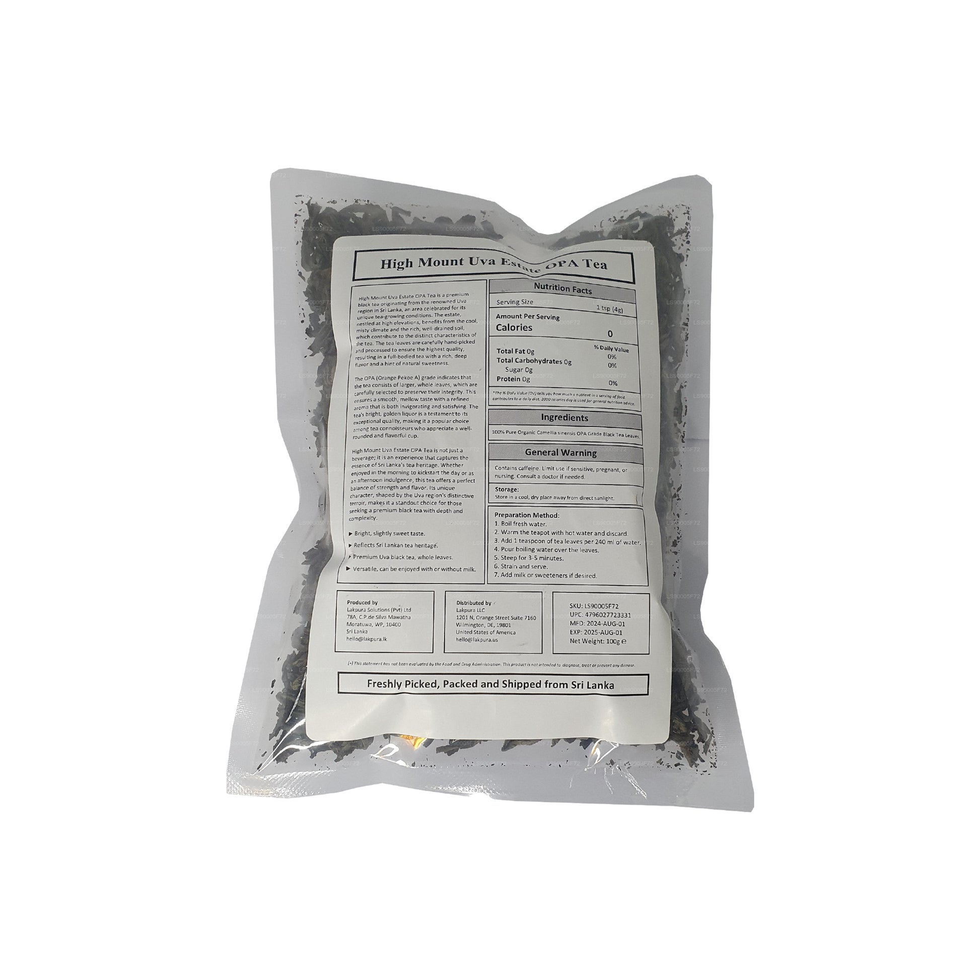 Lakpura® Uva High Mount Uva Estate OPA Tea (100g)