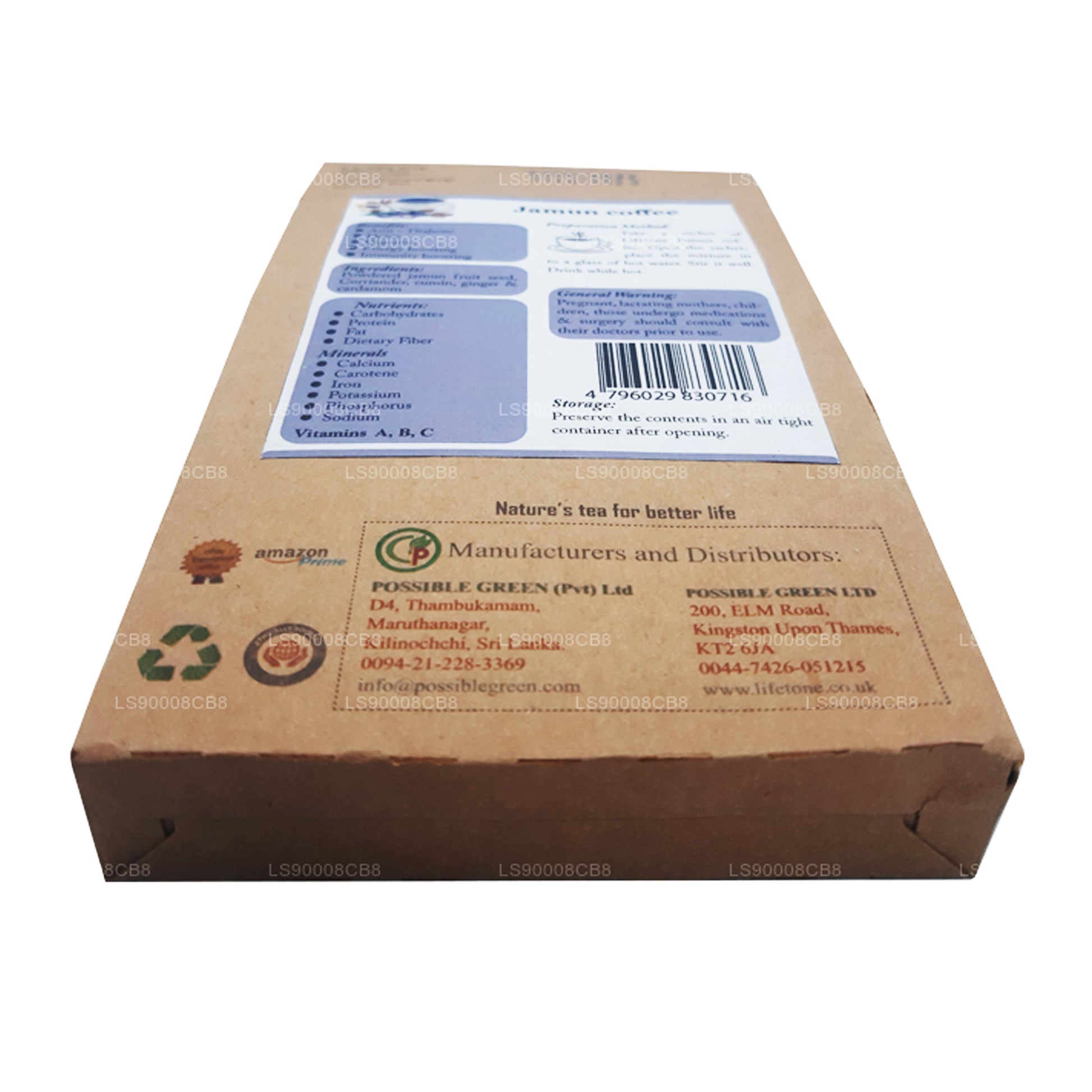(SKU: LS90008CB8) Wiadomo, że jądro nasion Jamun ma niesamowite korzyści zdrowotne. Doskonale nadaje się do kontroli cukru, zarządzania cholesterolem i spalania tłuszczu. Jamun Jambolan jest używany do prowadzenia zdrowego życia od lat, a nasza kawa Lifetone Jamun (Jambolan) jest produkowana z doskonałym akcentem suszonego imbiru, dzięki czemu możesz skorzystać z ogromnych korzyści zdrowotnych. Składniki: 70% proszek z pestek jamun, 10% kardamonu, 10% proszku z nasion kolendry, 10% proszku z korzenia imbiru. Stosowanie: maksymalnie 2 saszetki dziennie. Spożywać rano i wieczorem, godzinę przed posiłkiem jest uważany za odpowiedni