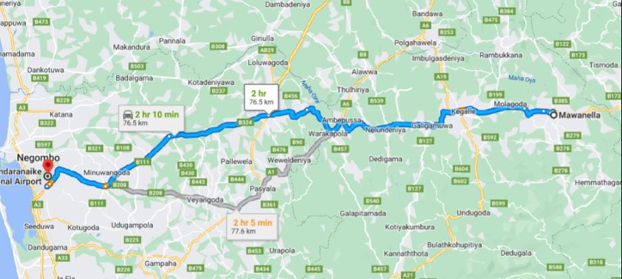 - Pick up from Mawanella and drop-off at ANY address within the city limits of Colombo Airport (CMB).
