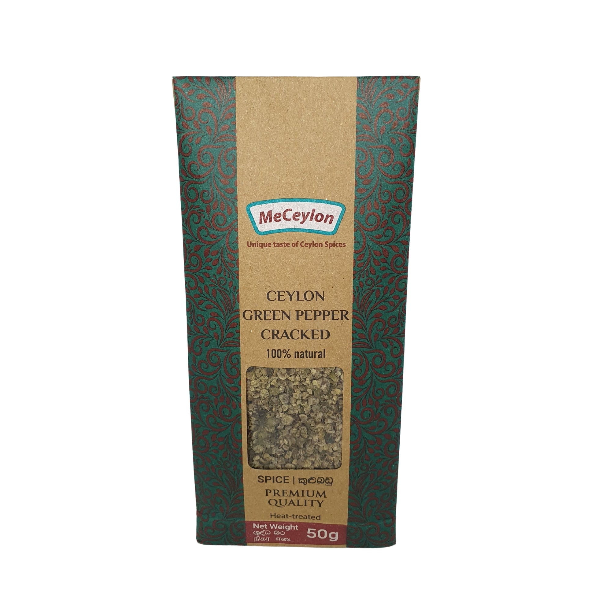 Me Ceylon Ceylon Green Pepper Cracked zawiera niedojrzałe jagody Piper nigrum zebrane wcześnie, aby zachować ich świeży, chrupiący smak, a następnie delikatnie pęknięte, aby uwolnić aromatyczne oleje bez mielenia na drobny proszek. Łagodniejszy i mniej ostry niż dojrzały pieprz, oferuje chrupiące, lekko owocowe nuty, które podkreślają owoce morza, sosy, sałatki i lekkie dania. Wyprodukowana przez Meceylon przy użyciu zrównoważonych praktyk pozyskiwania na Sri Lance, ta pęknięta zielona papryka zapewnia jasne, zniuansowane ciepło do Twojej kuchni. Idealny dla smakoszy i szefów kuchni poszukujących czystych, aromatycznych przypraw bez dodatków