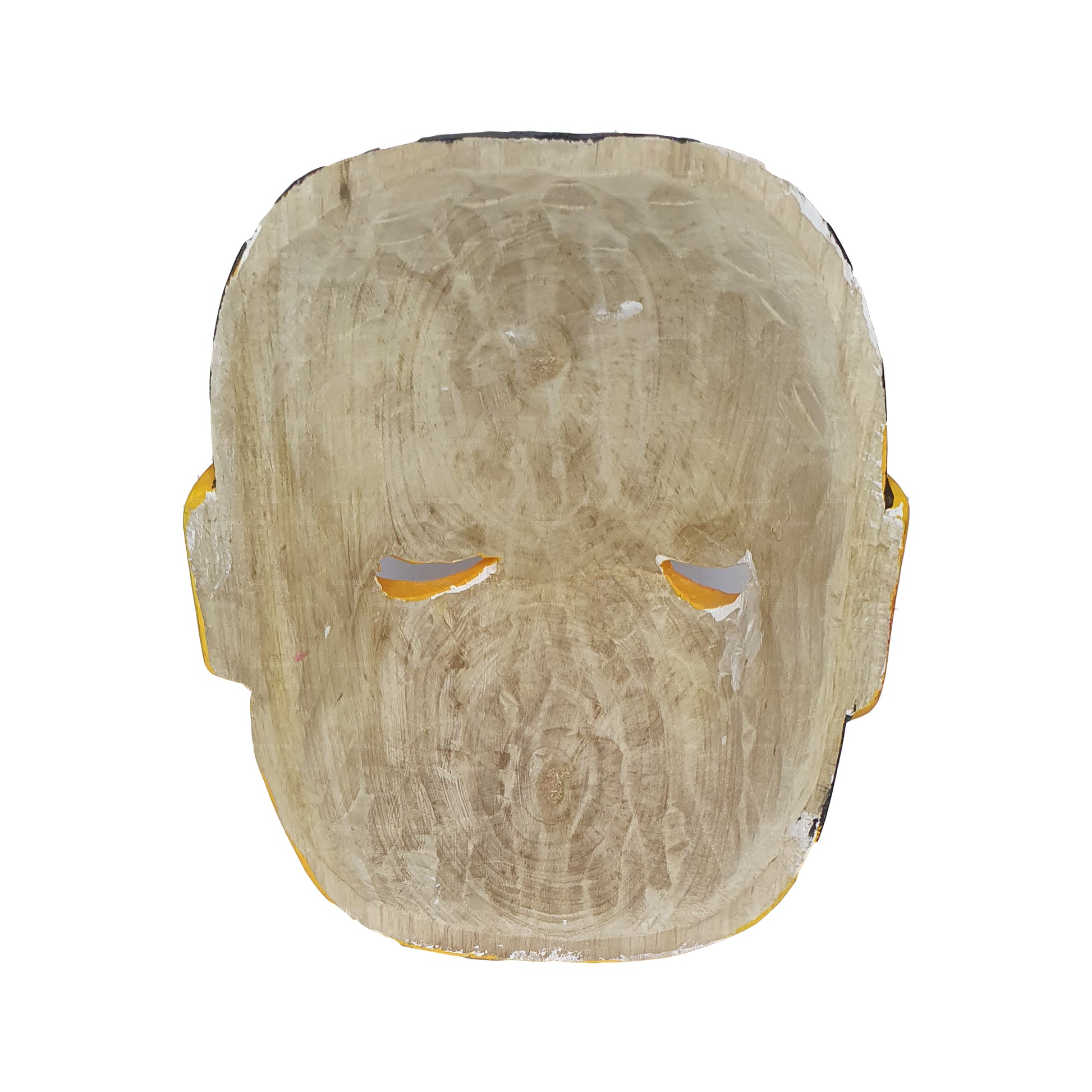 The mask of the Mudali (official) has been carved to display the arrogance and importance of a government official. Masks have been created with and without combs fitted to the head. Over the upper lip and round the two corners of the mouth was a moustache twisted and turned to two sides, and on two sides of the face are puffed up cheeks. By these mean an appearance of great dignity and importance is depicted. The mask of Mudali of the Ambalangoda, Hirewatte, Gunadasa dance troupe is square in shape, but in general this is not shown in other creation of dance troupes.