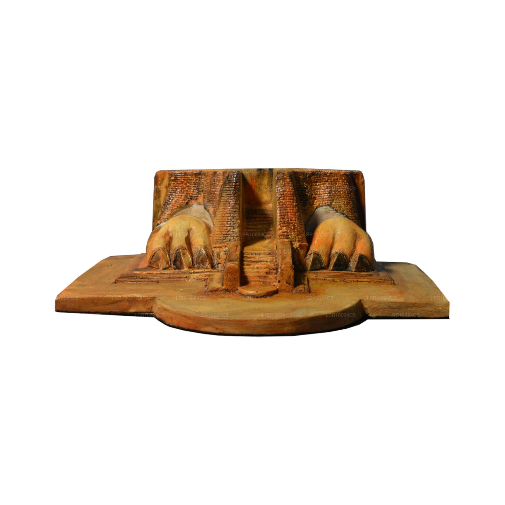 The Sigiriya lion's paws sculpture's ruins are accessible via the staircase that is surrounded by mirrors. The entryway to the royal palace is where "Sigiriya Lion Rock" got its name. The original entrance was through a huge lion-head-shaped brick sculpture. Today, all that is left of this sculpture at the base of the rock are its paws. The overwhelming nature of the lion sculpture at the time of his visit is described in a rare poem on the mirror wall of Sigiriya (Sometime between the sixth to thirteenth centuries). Where the mouth of the lion statue would have been where the staircase that ascends to the top of Sigiriya Rock begins. This traditional replica represents the Sigiriya lion's paws.