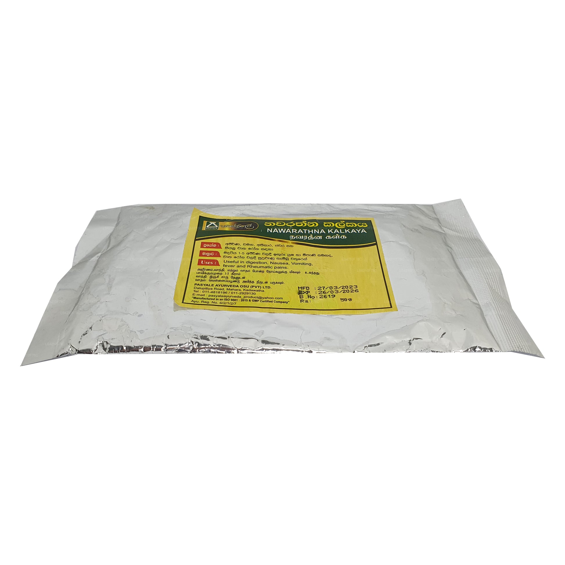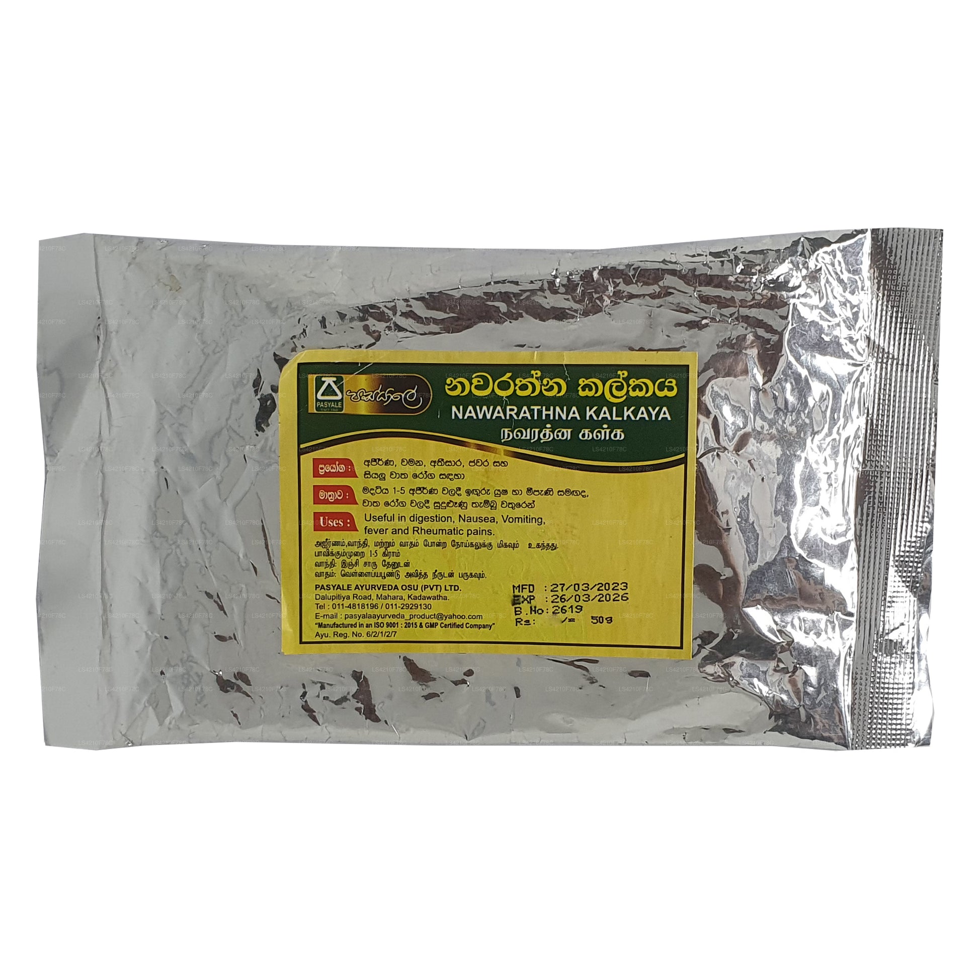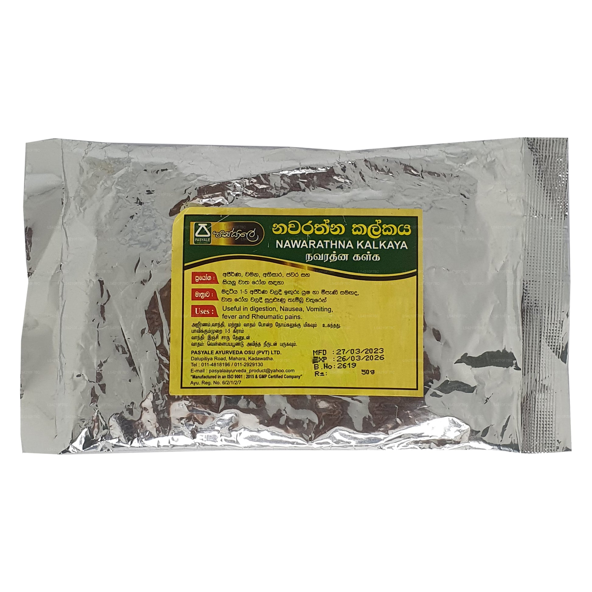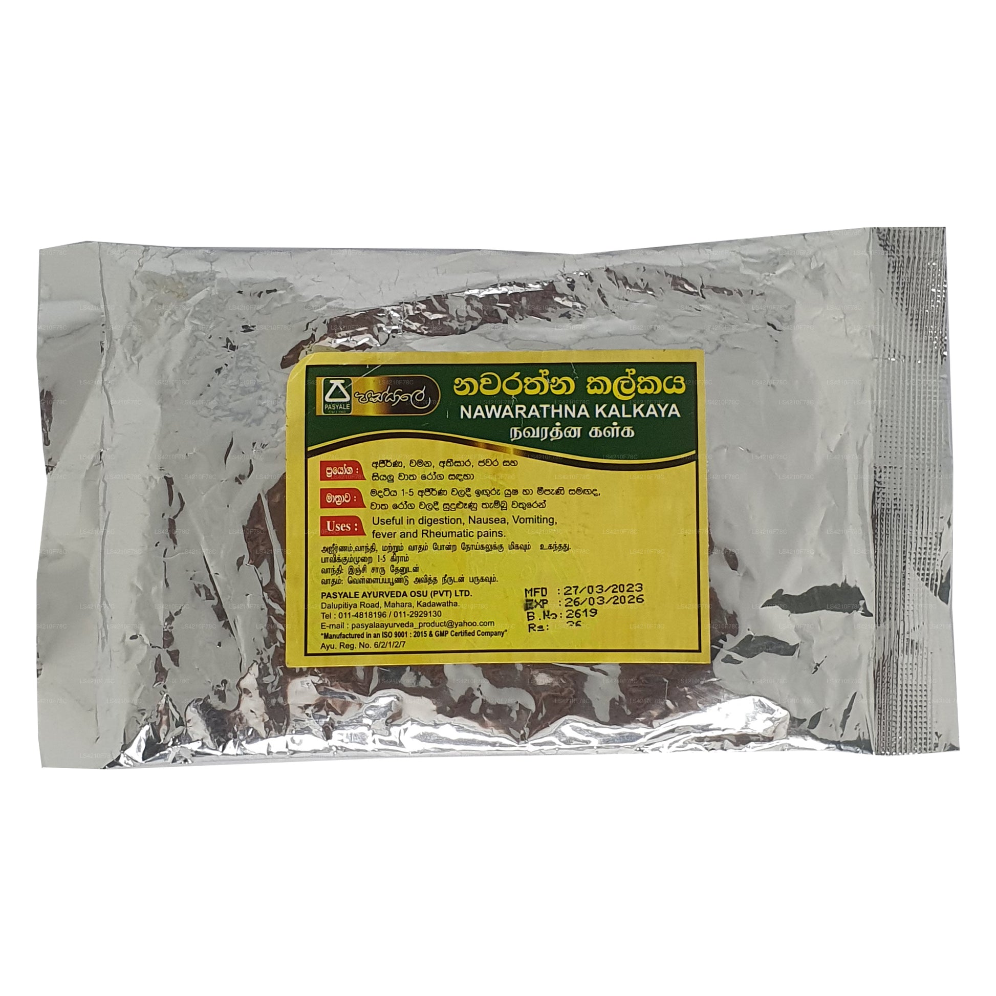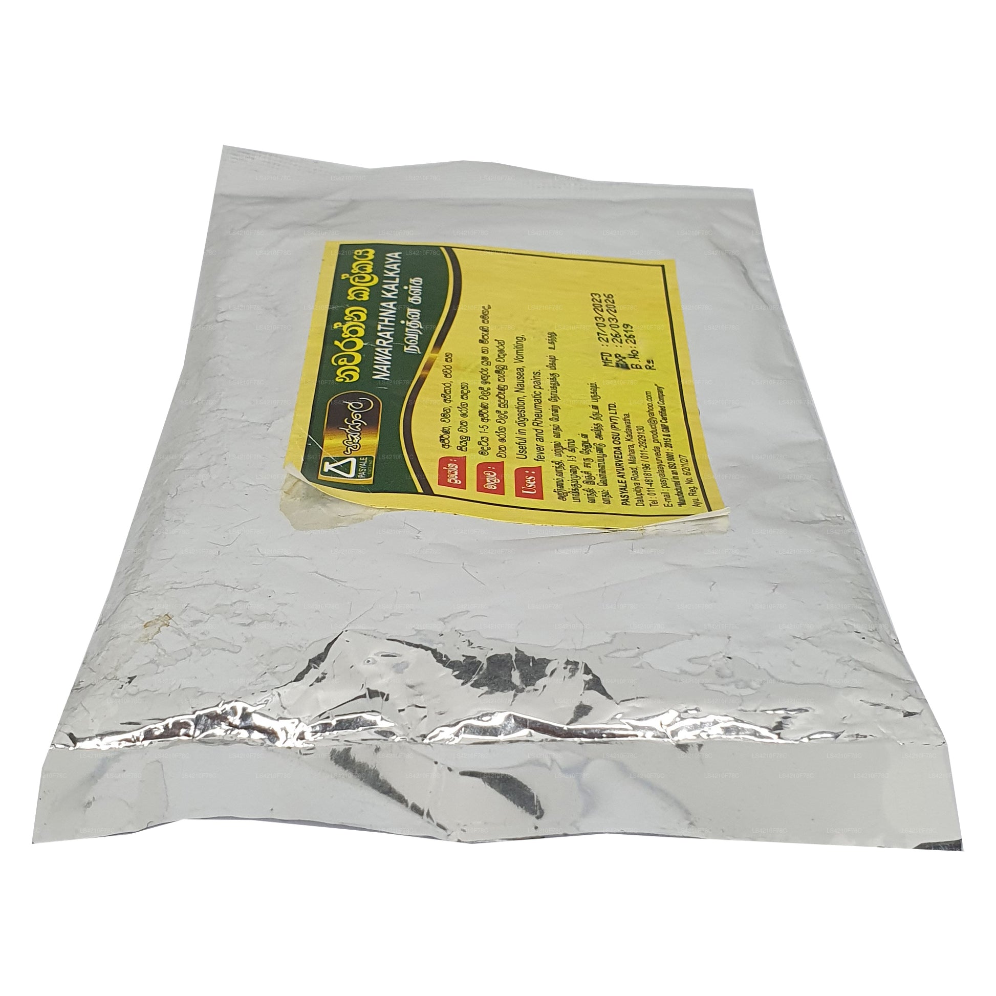 Składniki: Trachyspermum, (Carum Carvi) Asamodagam, Eugenia caryophyllata, (Goździk) Karabu neti, Glycyrrhiza glabra (Wel mee), Picrorhiza glabra (Katukarosana), Nigella sativa (Kaluduru), Kumin Cyminum (nasiona kminku) Suduru, miód pszczeli (Mee pany)