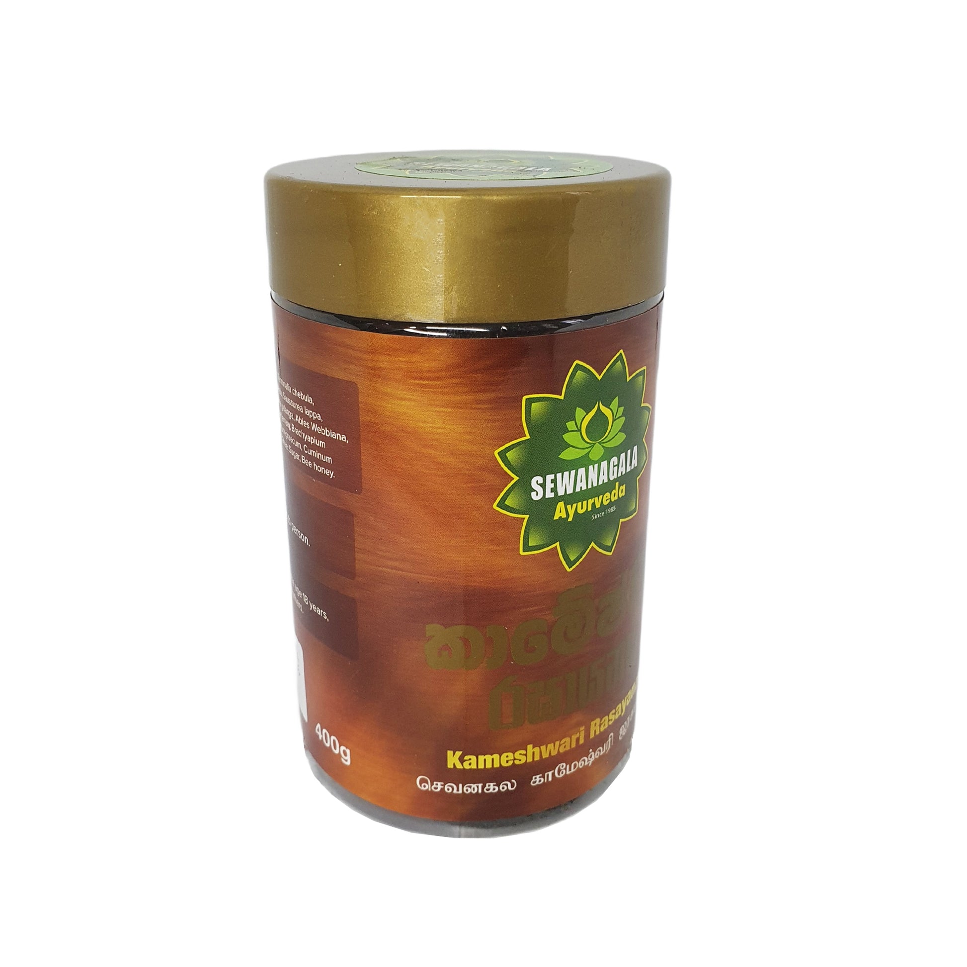 Sewanagala Kameshwari Rasayana (Export) to tradycyjna mieszanka ziół, która ma na celu poprawę wyglądu zewnętrznego, wsparcie zdrowia reprodukcyjnego i promowanie ogólnego dobrostanu. Regularne stosowanie tworzy romantyczną, podnoszącą na duchu atmosferę, uspokaja umysł i odnawia witalność.