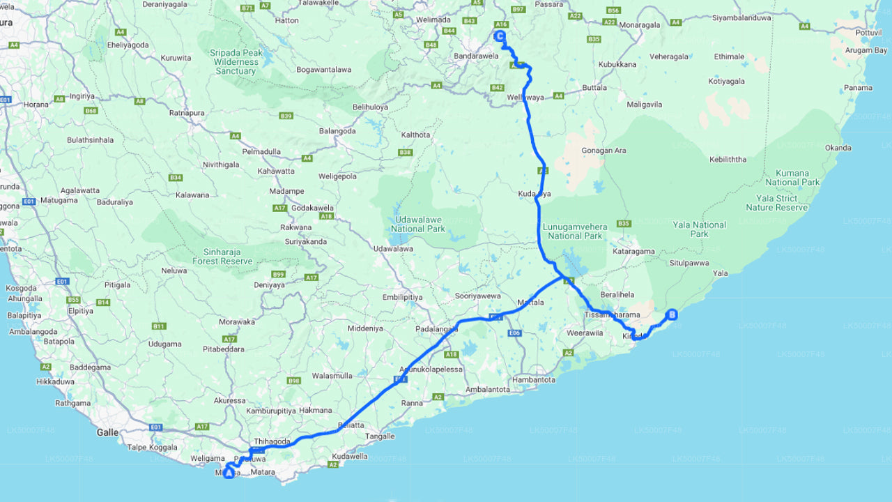 Kataragama City to Mirissa City Private Transfer