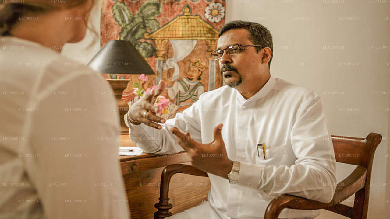 Pierwszego dnia odbędzie się wstępna konsultacja lekarska w naszym ośrodku ajurwedyjskim na Sri Lance, która potrwa około 30 minut. Podczas konsultacji lekarz zidentyfikuje Twoją równowagę prakurthi i zaburzenia trzech dosz. Następnie lekarz zaleci procedurę leczenia i dietę opartą na wartościach odżywczych zawartych w koncepcjach ajurwedyjskich. Otrzymasz harmonogram ćwiczeń jogi i medytacji, których będziesz przestrzegać. Następnie, codziennie, przez 10 minut, odbędzie się konsultacja kontrolna z naszym lekarzem ajurwedyjskim, który zdecyduje, czy powinieneś kontynuować te same zabiegi, zmienić ich czas trwania lub metody i procedury.