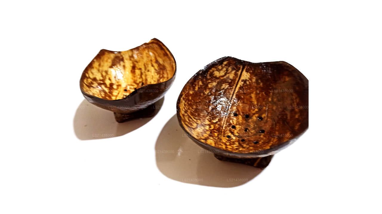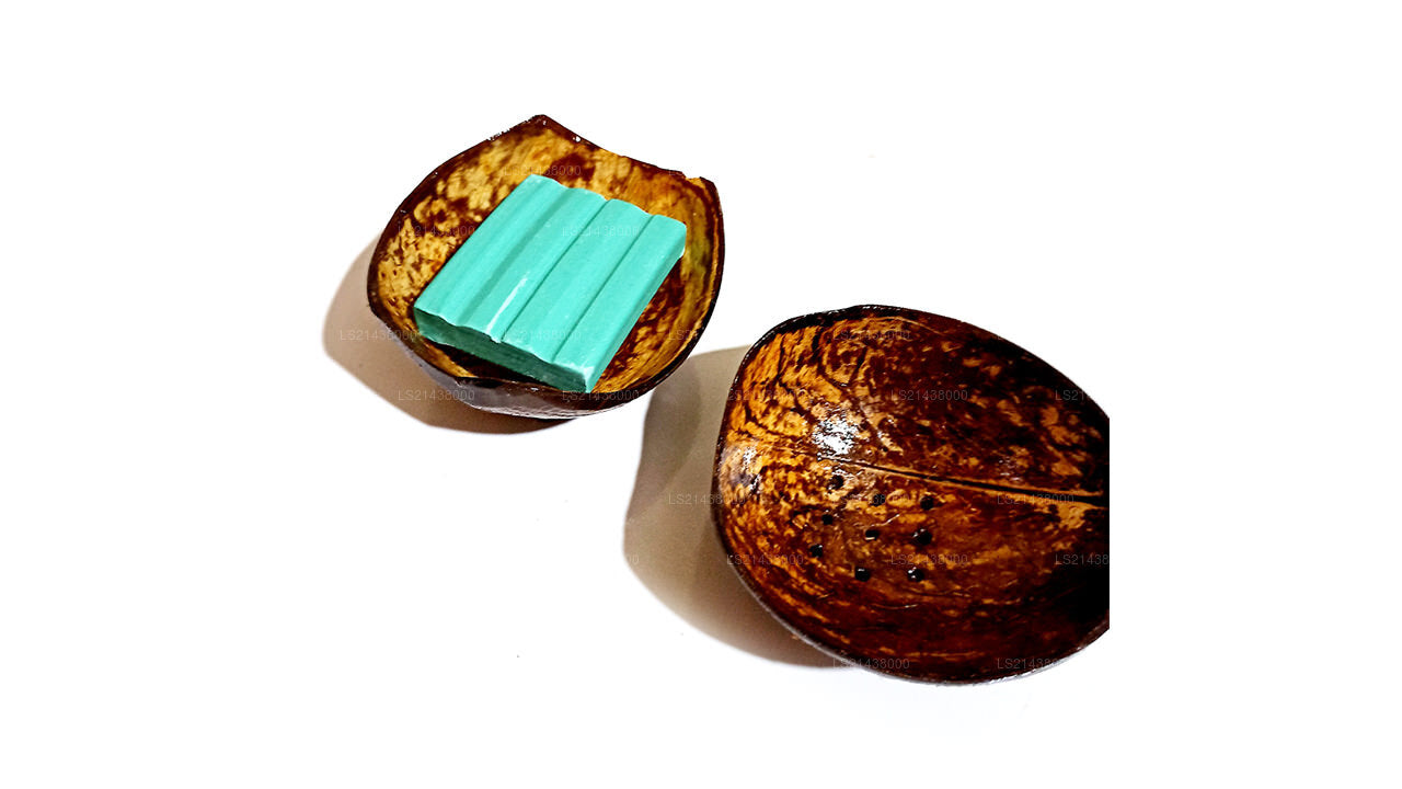 Soap holder made out of coconut shell, with a stand and drain wholes, perfectly designed for an eco-bathroom. Its will fit a medium size soap and will be the start to throw away the plastic soap holder, which would have been allergic for many skins.