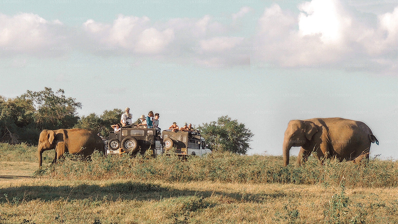This safari takes you on a ride through the Minneriya National Park. Enjoy the sight of over 150 elephants congregating in one place during the famous Great Elephant Gathering, which happens in the dry season between May to October. In addition to elephants, get a chance to also see many mammals, birds, reptiles and amphibians in the scrublands, forests and other areas.