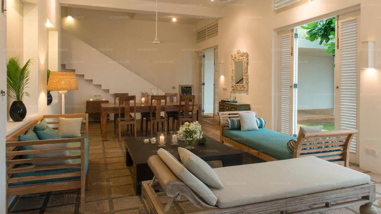 - Araliya Villa: The largest villa, accommodating up to eight guests, with two King Suites, one Double Room, and one Twin Room. Features a spacious living and dining area with direct access to the pool and beach.