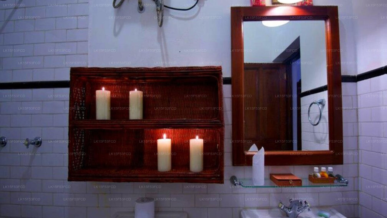 Villa Modarawattha features four luxury bedrooms, each furnished with four-poster beds and en suite bathrooms equipped with hot and cold running water. The rooms are designed to maintain a refreshing airflow, enhancing the retreat-like atmosphere for guests.