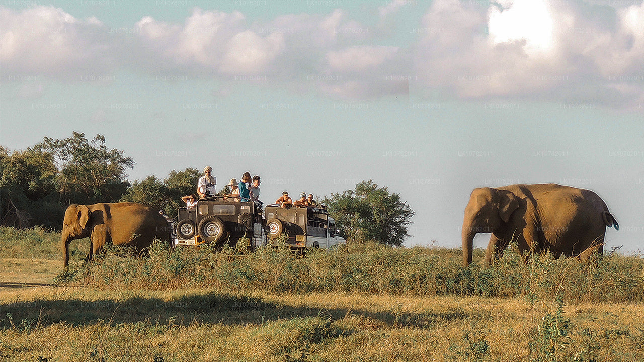 This three-hour safari takes you on a ride through the Minneriya National Park. Enjoy the sight of over 150 elephants congregating in one place during the famous Great Elephant Gathering, which happens in the dry season between May to October. In addition to elephants, get a chance to also see many mammals, birds, reptiles and amphibians in the scrublands, forests and other areas.