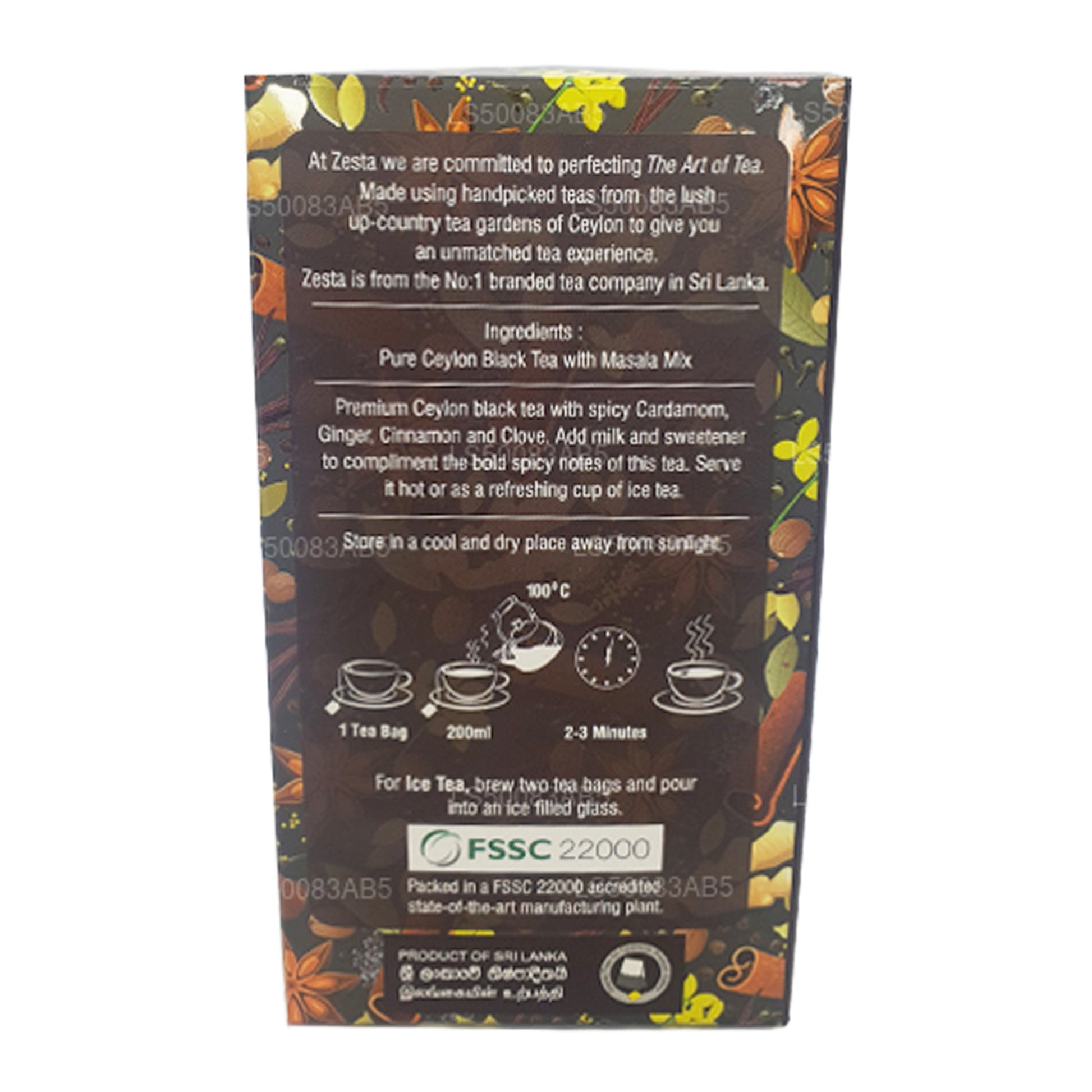 (SKU: LS50083AB5) Herbaty o smaku pikantnym i owocowym oferują łagodny smak, doskonały aromat i subtelną słodycz. Oryginalny smak klasycznej filiżanki czarnej herbaty Ceylon uzupełnia połączenie pikantnych smaków. Idealny do mrożonej herbaty lub jako gorący napój na każdą porę dnia, ta ekscytująca kolekcja jest dostępna jako torebki herbaty pakowane pojedynczo folią bez zszywek.